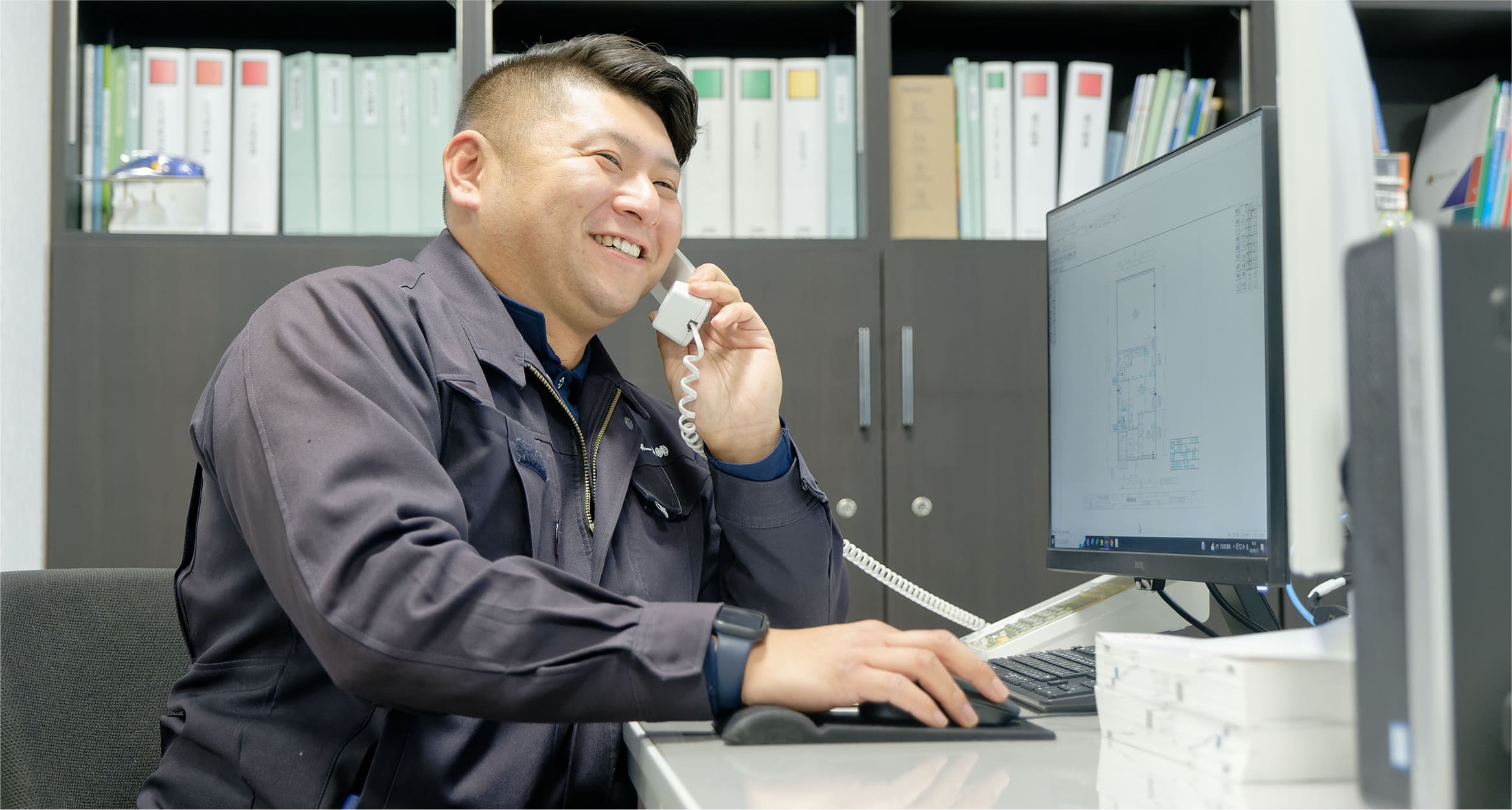 昨年入社したばかりですが、実際、当社の家は造りもしっかりしていて、クロスの貼り方や基礎部分はもちろん細かいところにもこだわって仕事をしています。本当にいい家だと自負しています。「今どき珍しいといわれる職人気質の仕事」をモットーに、家づくりに誠実に取り組んでいます。