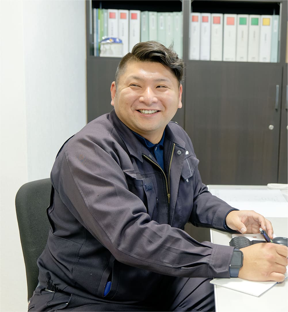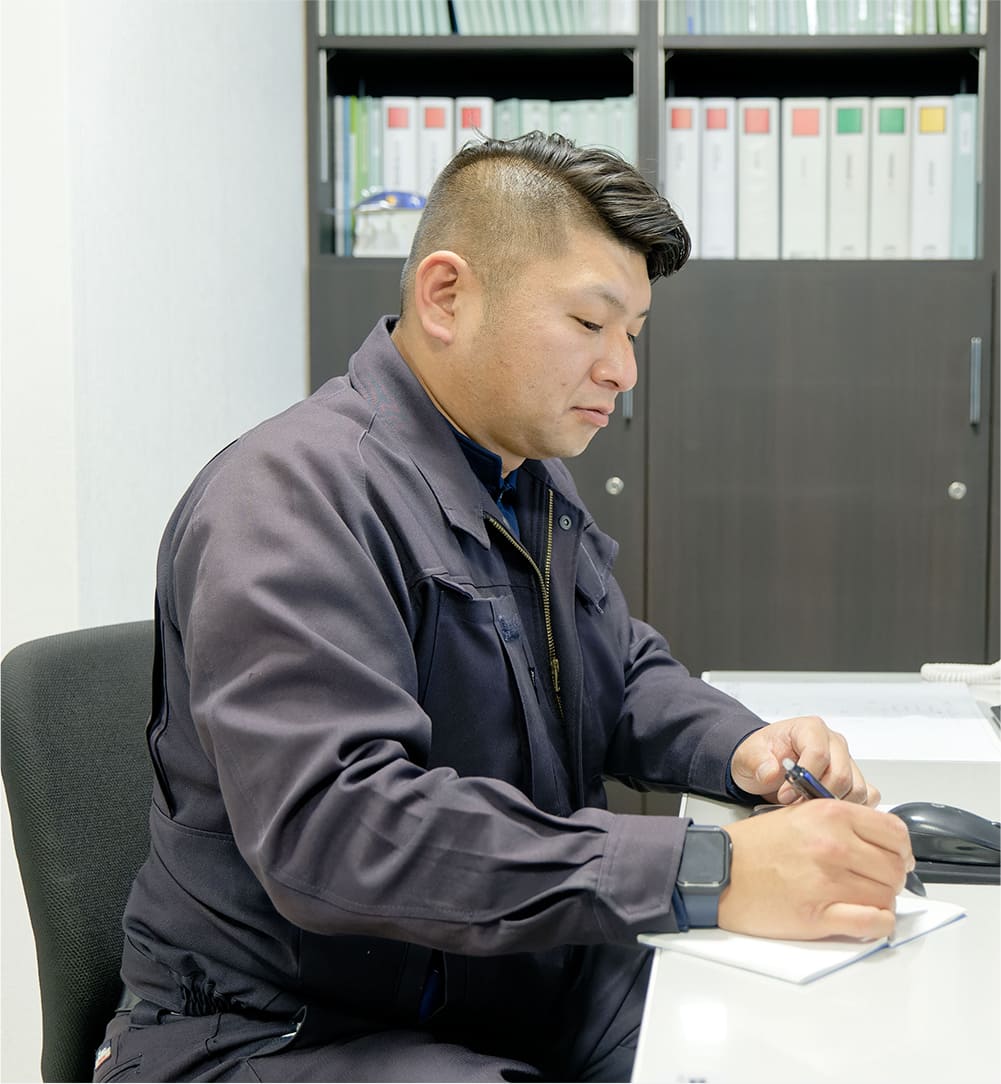 私が担当しているのは現場の施工管理です。土木関係の資格を取得しているので、入社時から基礎工事は自分が全部担当しています。ただ、「うわもの」の工事は知識ゼロからのスタート。初めは上司の現場に同行して一から教わり、最近、担当を任せてもらえるようになりました。分からないことはとにかく上司や大工さん、協力会社の職人さんにどんどん聞いています。