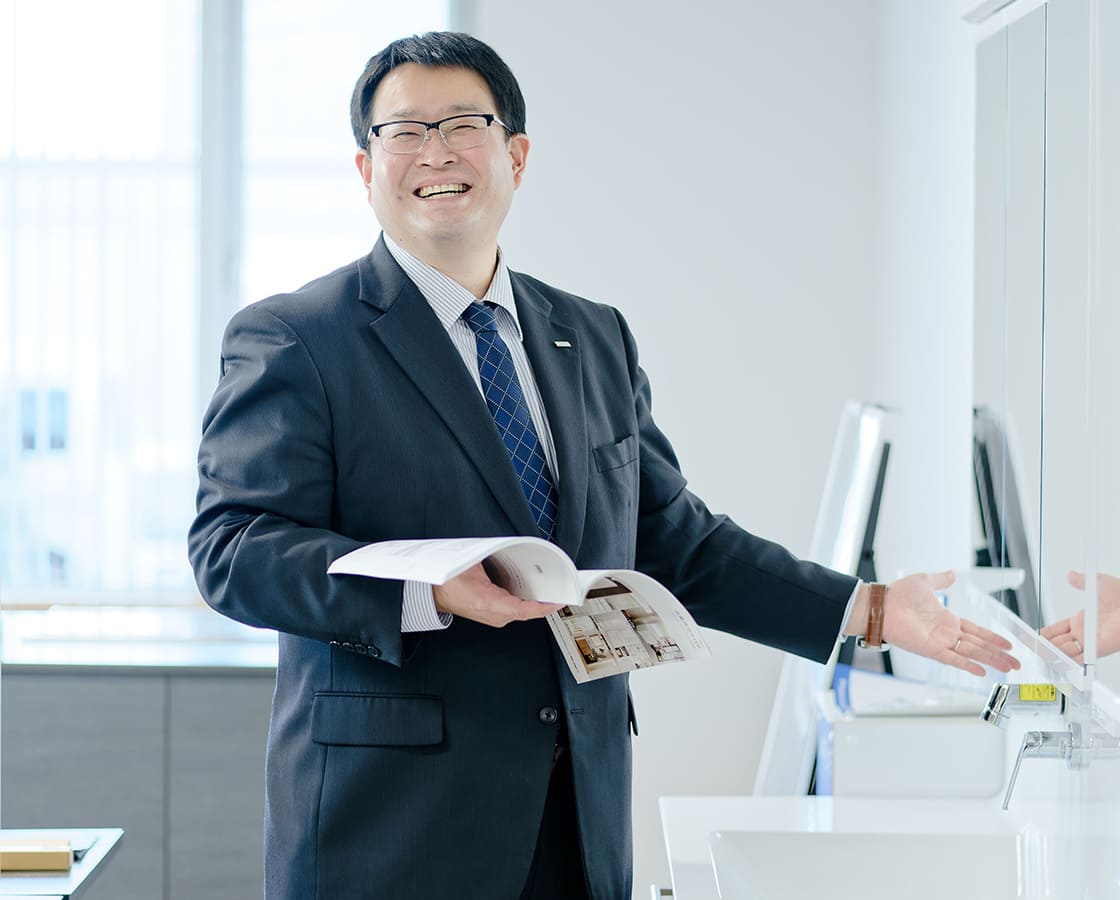 私は、営業の仕事を担当しています。住宅の購入は、人生にとって大きなものです。住まいは人々の生活の基盤であり、その中で大切な瞬間や思い出が生まれます。お客様の理想やニーズを丁寧にヒアリングし、その夢をカタチにするための提案やサポートを行うことで、お客様が本当に満足できる住まいを提供したいと思っています。